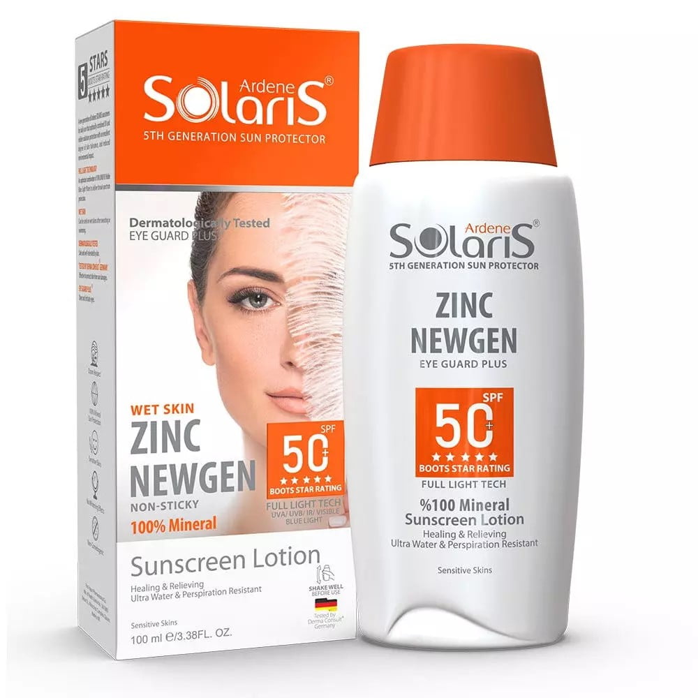 ضدآفتاب فیزیکال زینک نیوژن +SPF 50 آردن سولاریس یک لوسیون ضد آفتاب با فرمولاسیون ۱۰۰٪ مینرال (فیزیکال) است که برای پوستهای حساس و آسیبدیده، از جمله پوست کودکان و حتی خانمهای باردار، طراحی شده است. این محصول با ویژگیها و مزایای متعددی ارائه میشود: