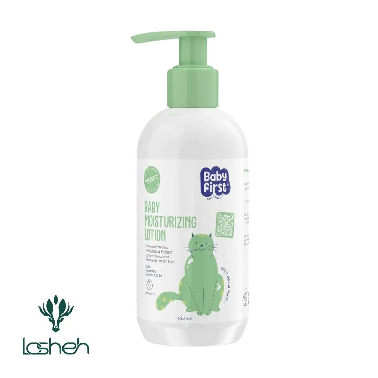 لوسیون مرطوب‌کننده کودک بیبی فرست با فرمولاسیون خاص و پیشرفته مناسب انواع پوست می‌تواند از پوست نوزاد و کودک شما مراقبت کند و رایحه‌ای ماندگار و دلپذیر را برای خانواده شما به ارمغان بیاورد. لوسیون مرطوب‌کننده رطوبت پوست فرزند شما را حفظ کرده و هر گونه خشکی را برطرف می‌کند. این محصول حاوی ویتامین‌های A ،D و E است بنایراین مواد مغذی لازم را به پوست می‌رساند. از ویژگی‌های دیگر می‌توان به بافت سبک و غیر سنگین آن اشاره کرد که منجر به استفاده روزانه می‌شود. ت
