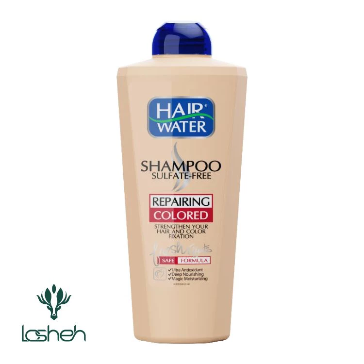 شامپو بدون سولفات مناسب موهای رنگشده هیر واتر شامپویی است که برای موهای خشک و آسیب دیده نیز استفاده میشود. موهای بانوان در اثر حرارت سشوار، رنگ و دکلره به شدت آسیب میبیند بنابراین باید از شامپویی استفاده کرد که باعث ترمیم و بازسازی آن شود و به حفظ و تقویت ریشه و ساقه مو نیز کمک کند. این شامپو کراتین هیدرولیز شده، عصاره آرگان و آووکادو دارد که باعث رطوبت و آبرسانی و ترمیم موهای آسیبدیده میشود.